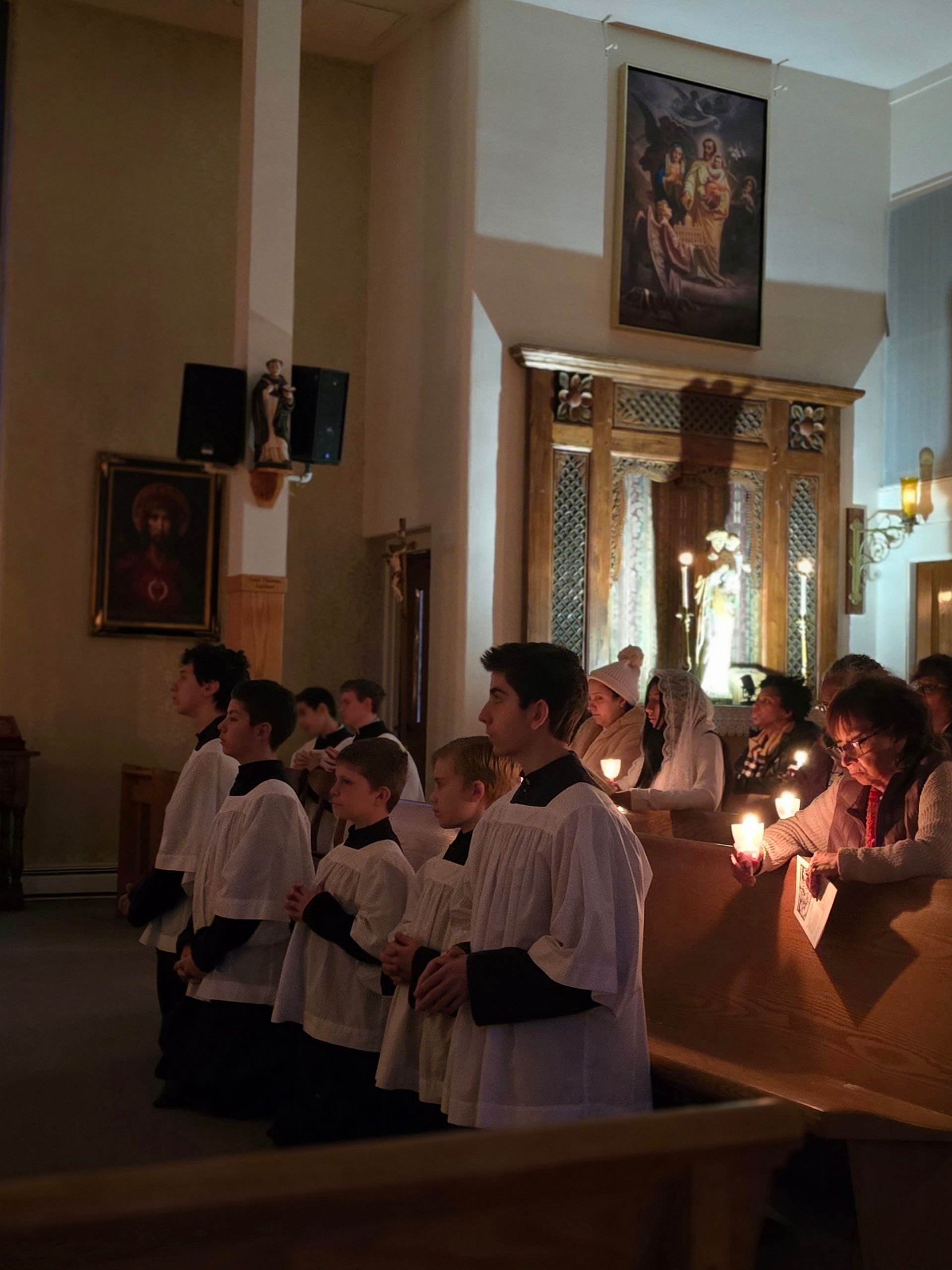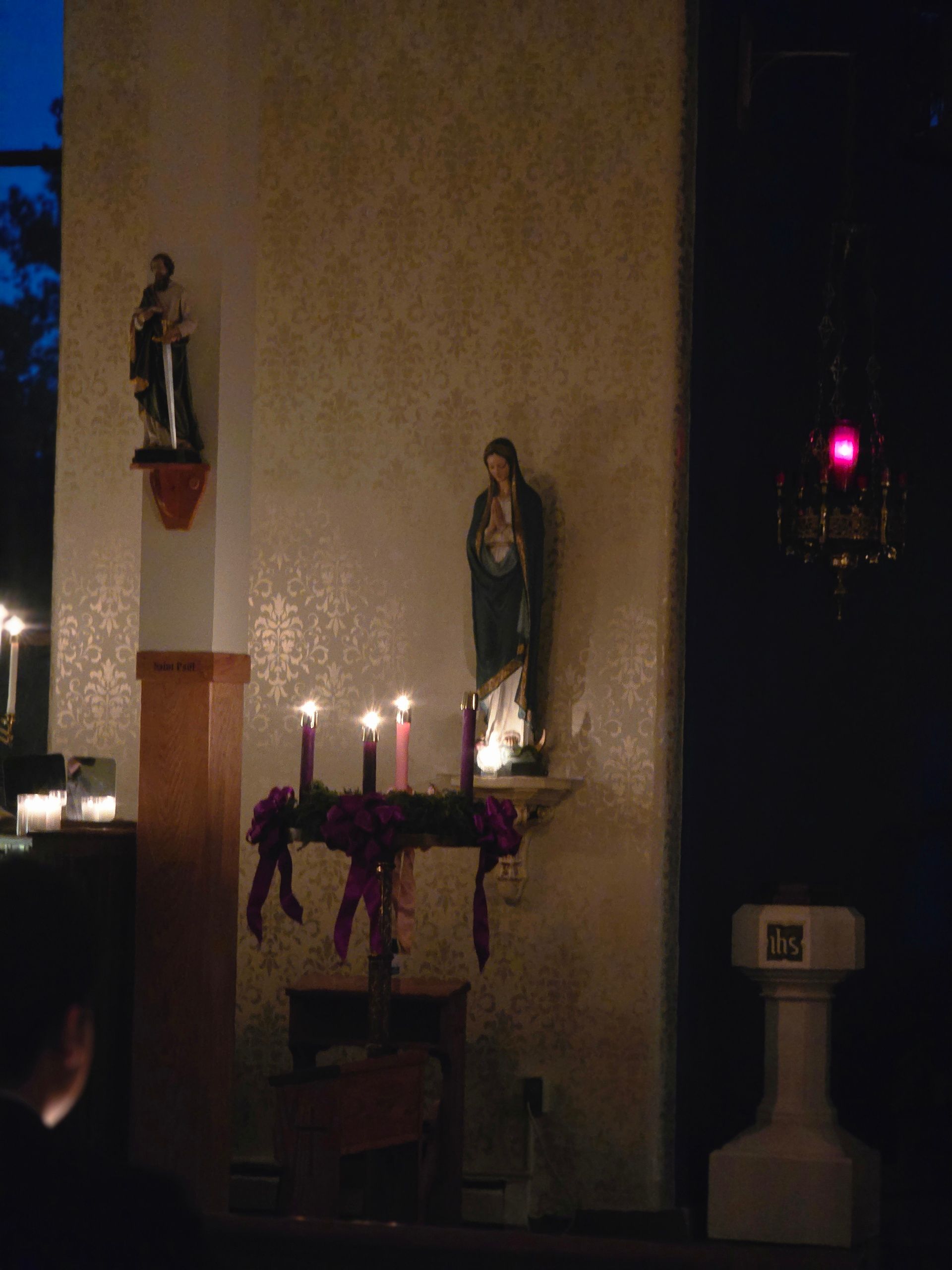 This traditional Advent Mass is celebrated just before dawn as a devotion to the Blessed Virgin Mary. The Mass is only lit by candles, representing Mary’s role in bringing the Light of the World into the darkness of the world.